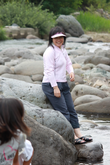 去年の川は冷たくて足をつけるのがやっとだったけど、今年の川は気持ちいい!