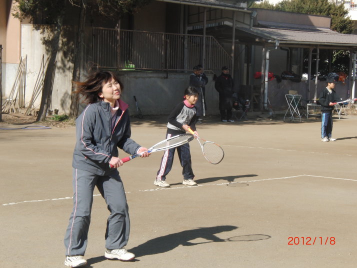 毎年恒例の親子テニスです。親子でペアを組んだり、親子で対決したり。