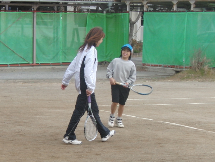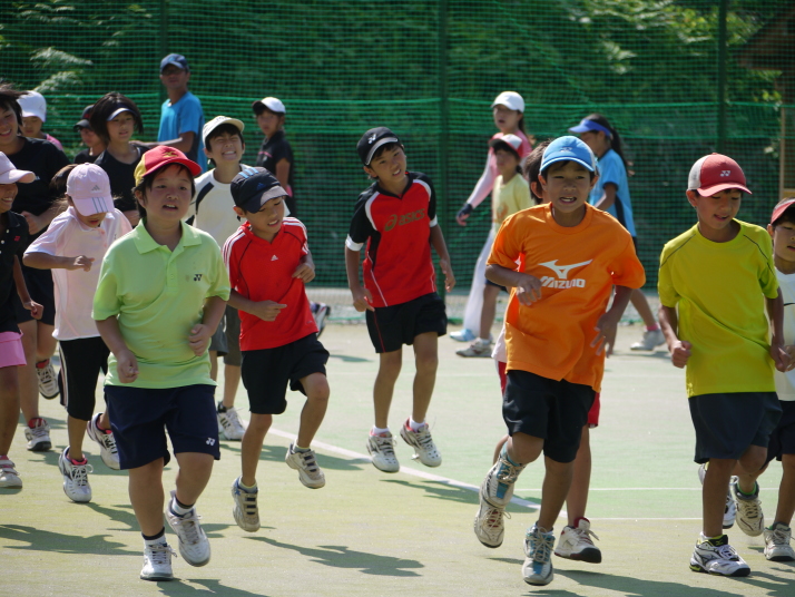 うめやとテニスコートは離れていて、いつもマイクロバスで移動します。でもバスに乗らないで走る子供たちもいます。