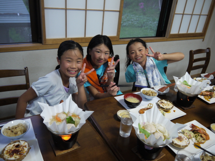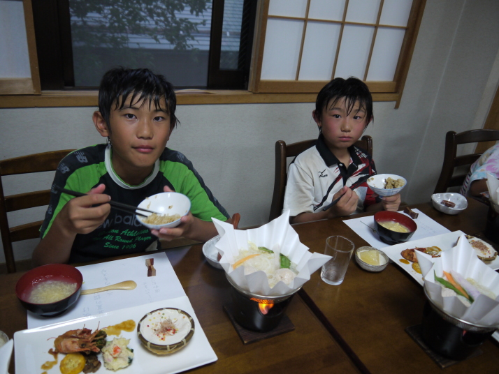 練習が終わるとうめやに戻ってご飯です!水がおいしい。だからご飯もおいしい!
