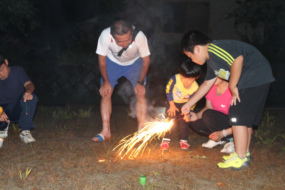 恒例の花火!直前まで大雨が降っていて、どうなることかと思ったら花火にあわせて雨がやみました。さすが(笑)。