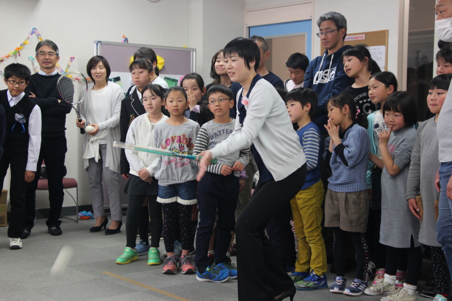 そして、待機場所のために確保したバドミントンコートでは、結局バドミントンやりました(笑)。あ、先生もやってる。