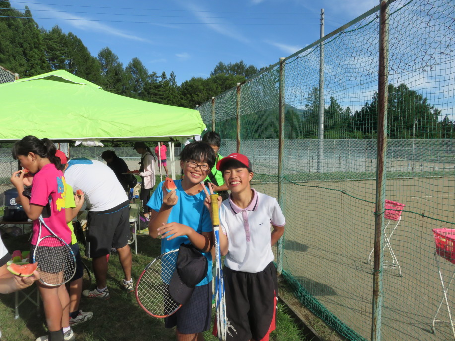 去年は雨にたたられましたが、今年は全部晴れ!クレーコートでずっと練習できました。