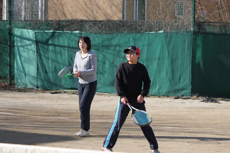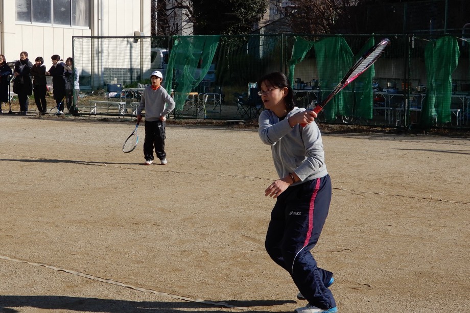 そして役員さんもテニス体験。経験者も未経験者も楽しみました。