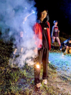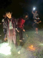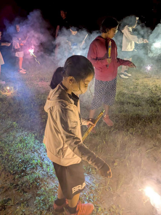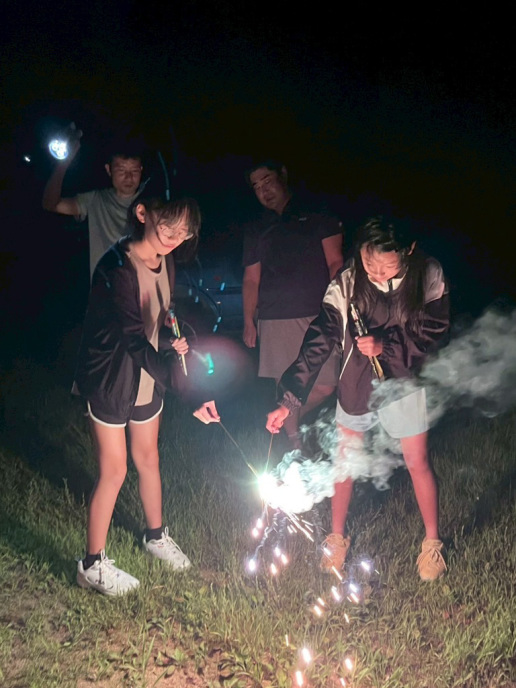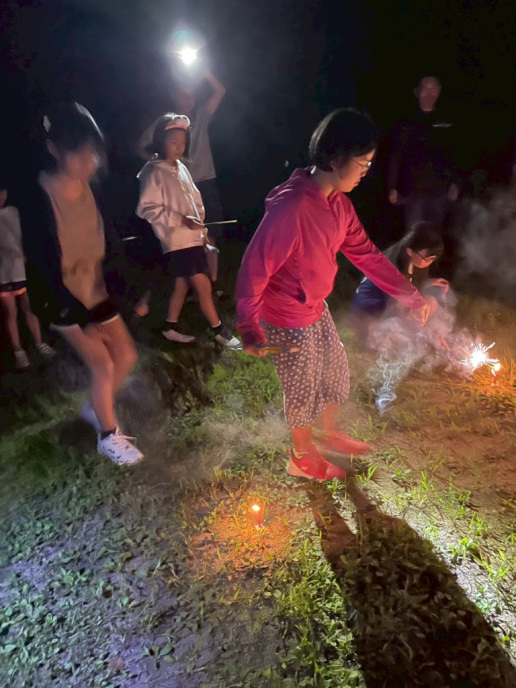 夜の花火はドラゴン花火がたくさん!ナイアガラも2回!そのあとに上村コーチの星空観賞会もやりました。天の川見えましたね!人工衛星のことも教えてもらいました。
