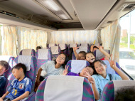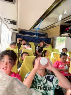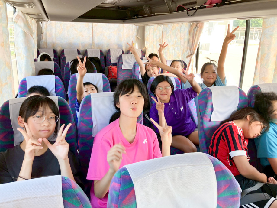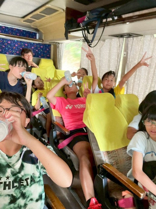 バスで出発です。やっぱりこのバスの行き帰りが楽しい!合宿が初めての子は期待が膨らみます!