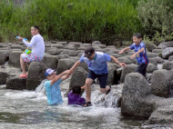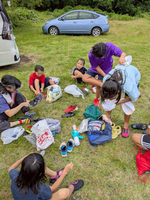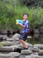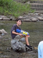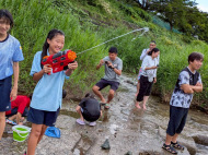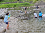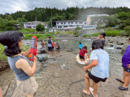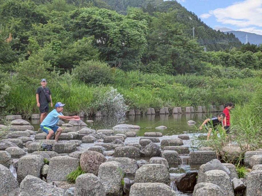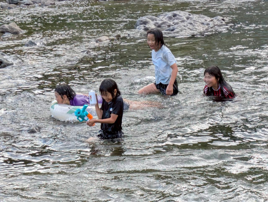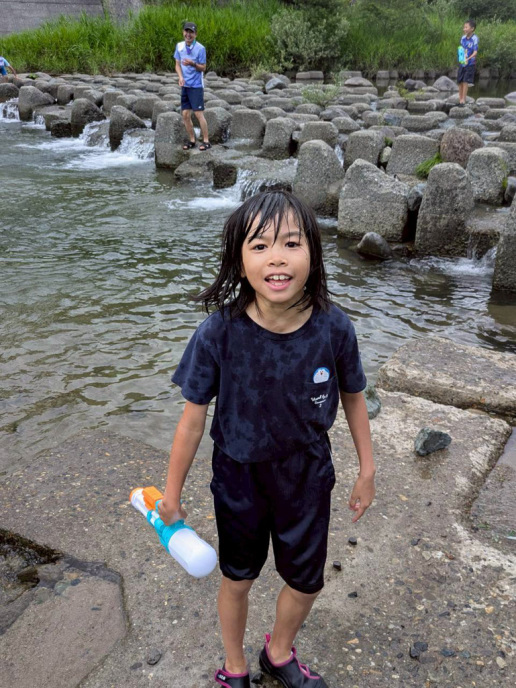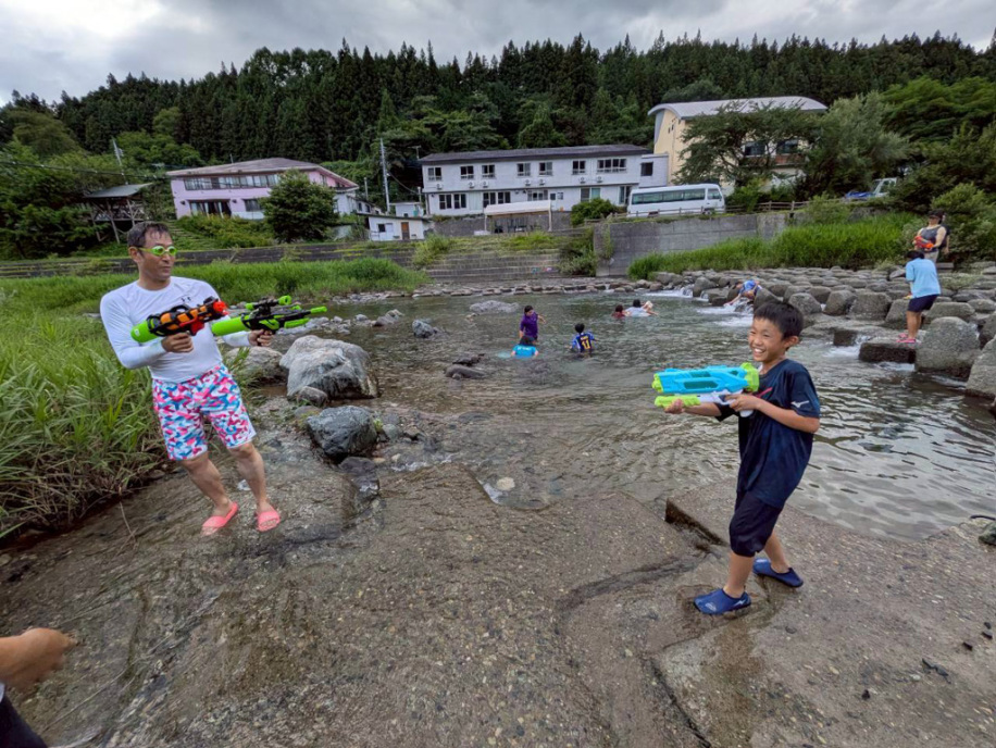 2日目が雨かもしれなかったので、初日に川遊びと花火!