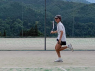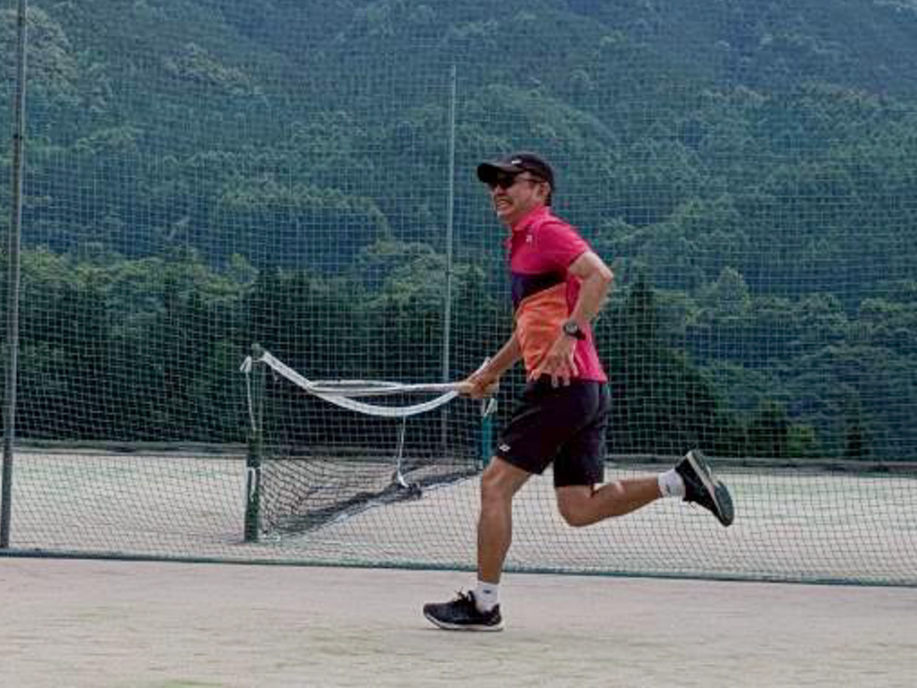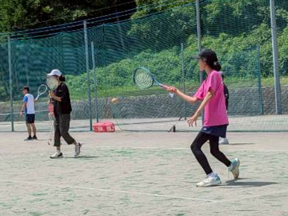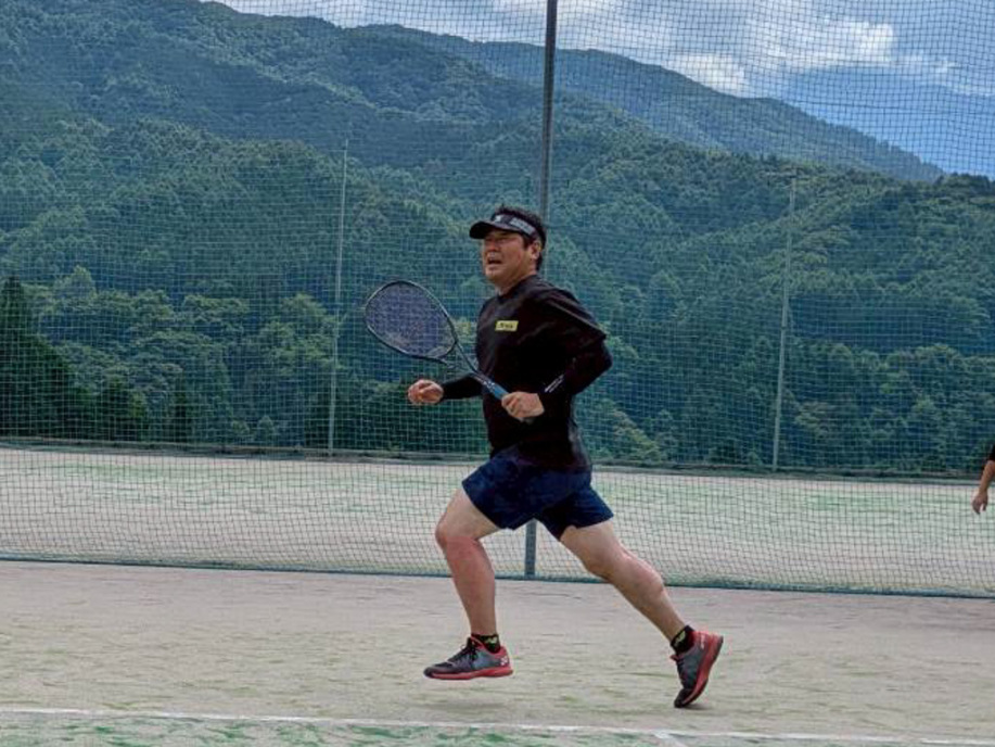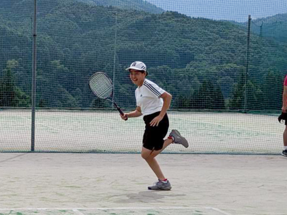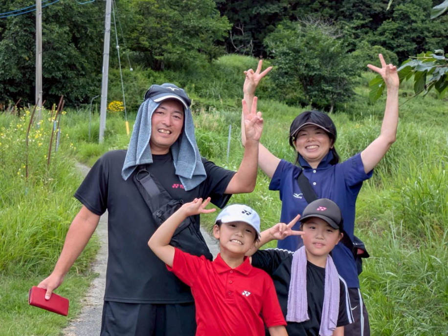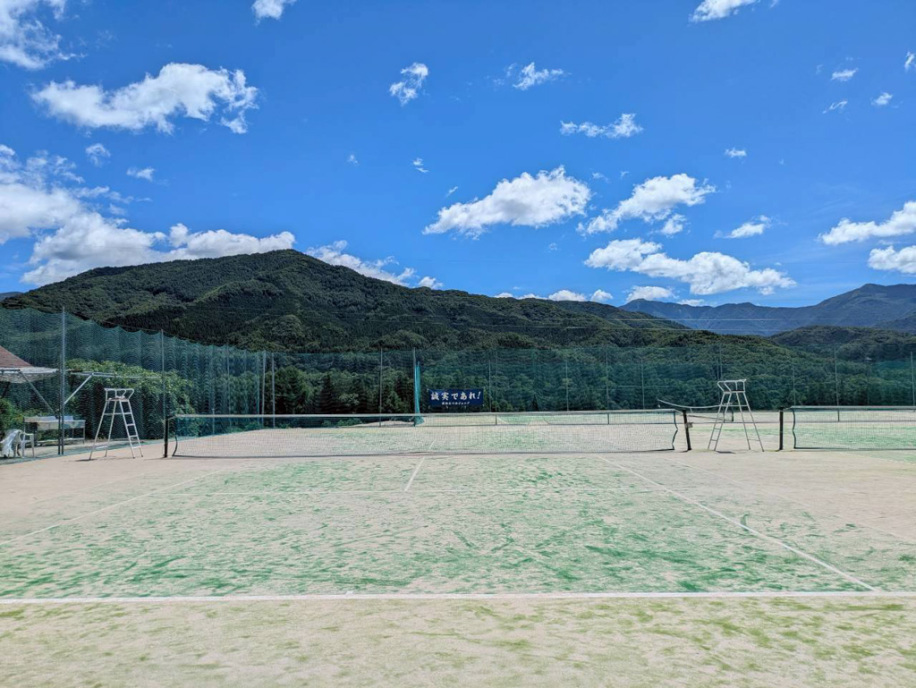 テニスコートまでうめやから700m。行きは上り、帰りは下り、歩いて移動します。
