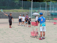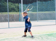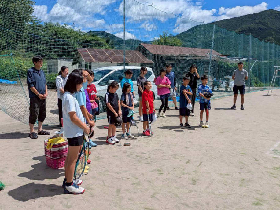 テニス練習開始です!低学年チーム5名、高学年チーム8名です。