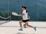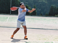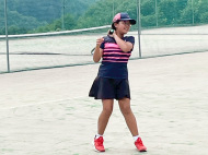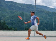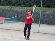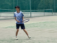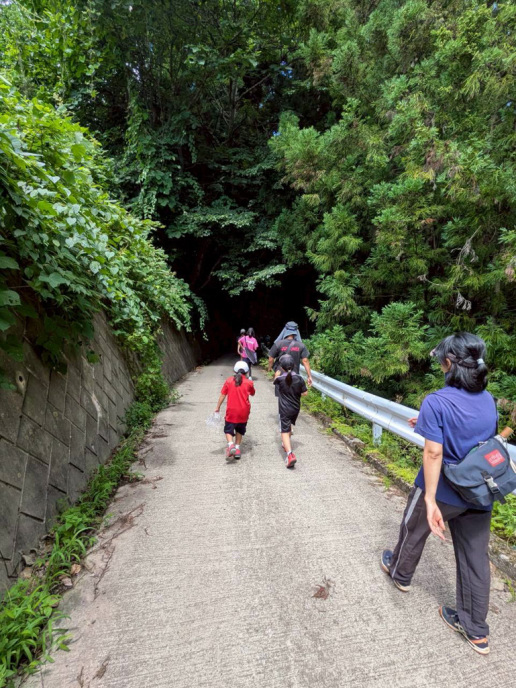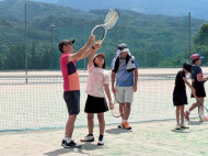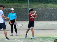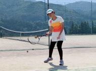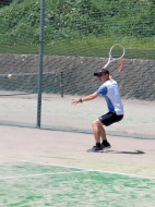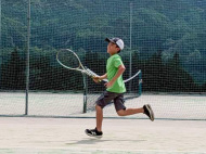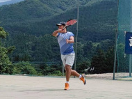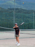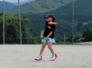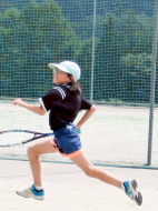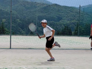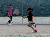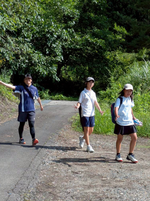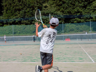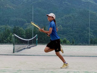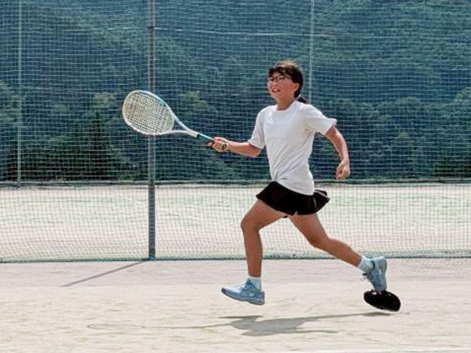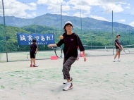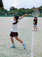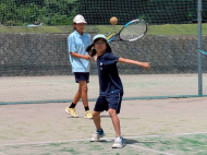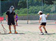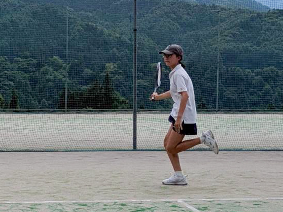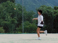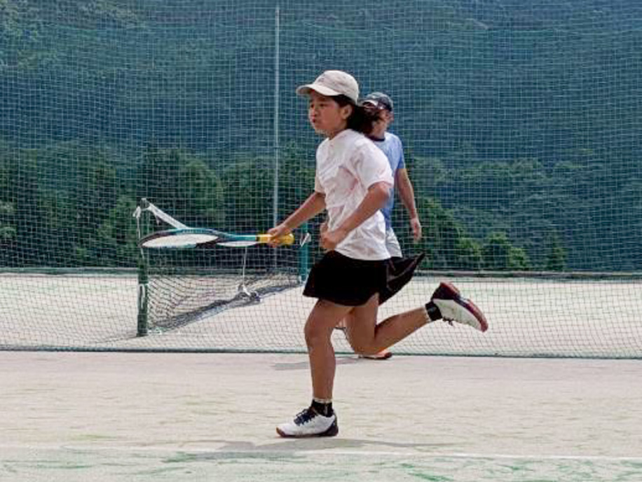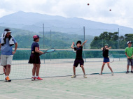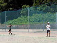 テニスコートへ歩いて移動 |