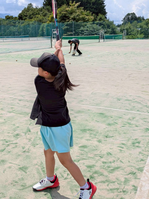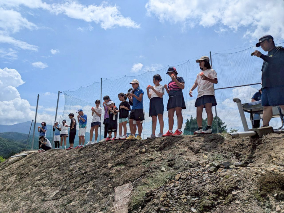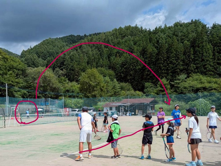高学年はこの1か月「クロスに打つ!」を地道に練習してきました。合宿中もみっちり練習して、みんなクロスに打てるようになってきました!