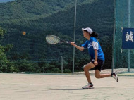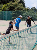遠くに出されるロブを走って打ちます。今年は3面にしてみよう!