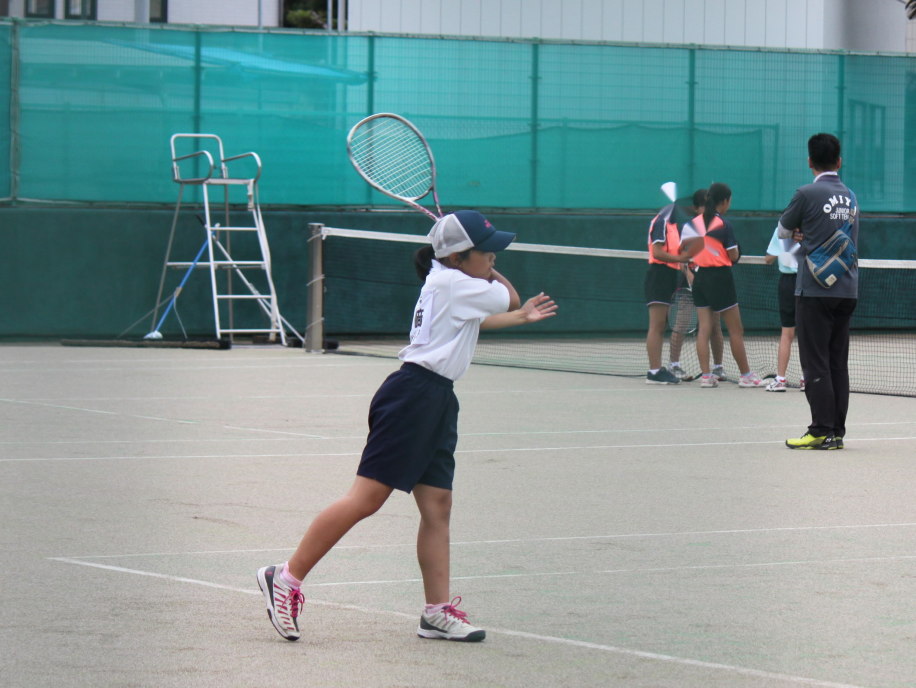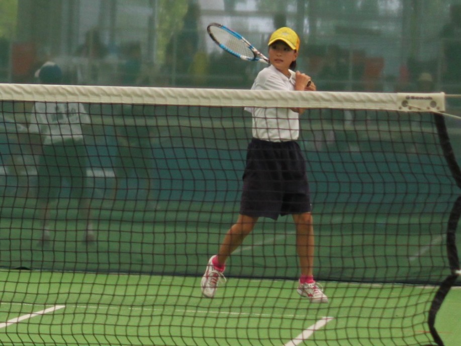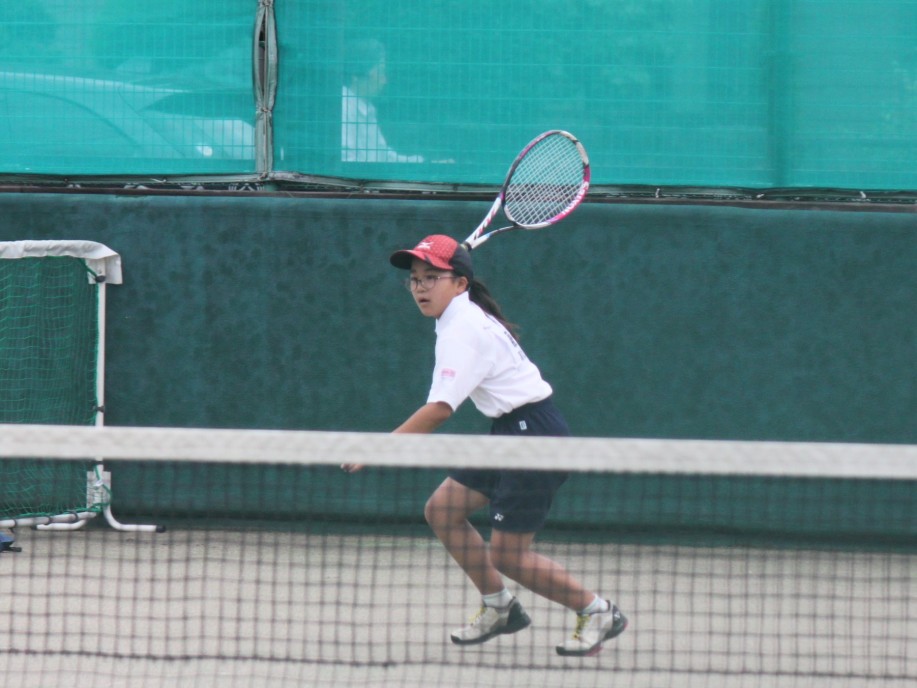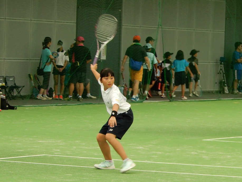 (1試合目勝利は見事!ひなた:第一シード相手に堂々とストロークを打ち合っていた。ボールのタイミングに合うよう早く打点に入り早く構える。を意識して。