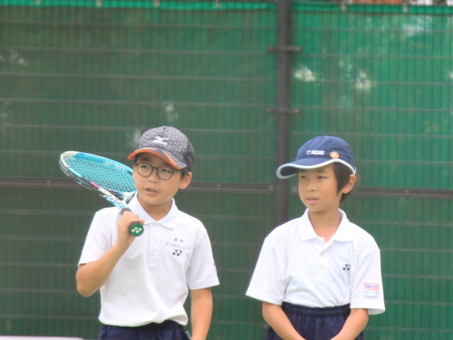 (二人とも最後まで声が出てハツラツしたテニスができた。ダイキ:しっかり構えて打てて安定感アリ。あとはきびしいコースを狙える力をつけよう。
