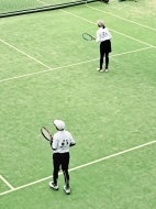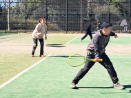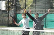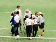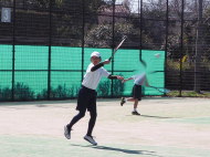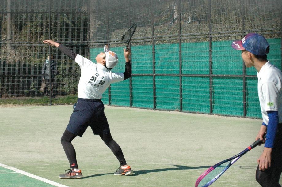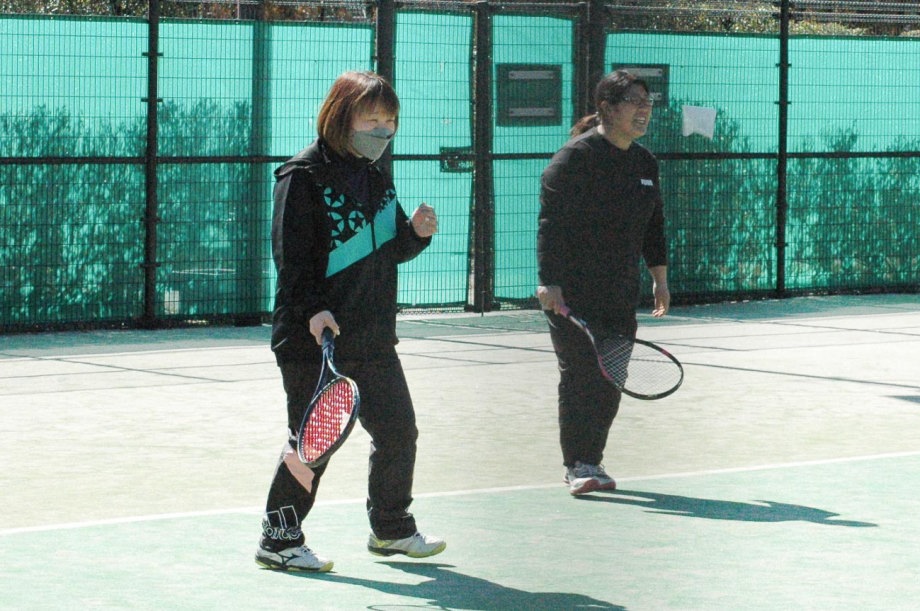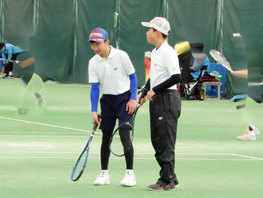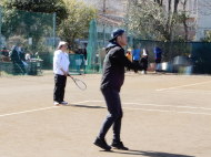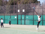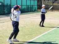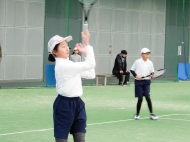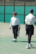 男子の小林・須賀(敏)ペアが箱上を破って1位抜け!ハルクのボールは鋭いコースをつき、よく走りました。トシキは前衛を始めたばかりですが、積極的にボレーをし、レシーブもよかった!