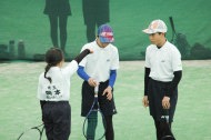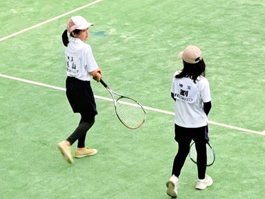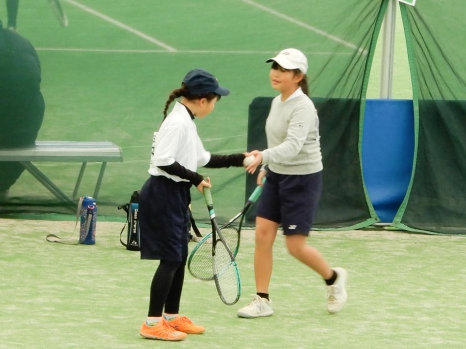 5年生以上女子のシホペアが2勝して予選リーグ突破!初めての箱抜けでした。シホもようやく緊張せずに打てるようになってきました。