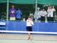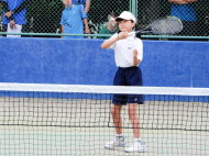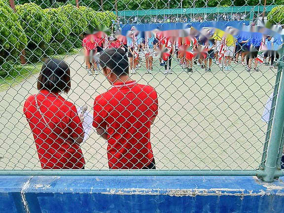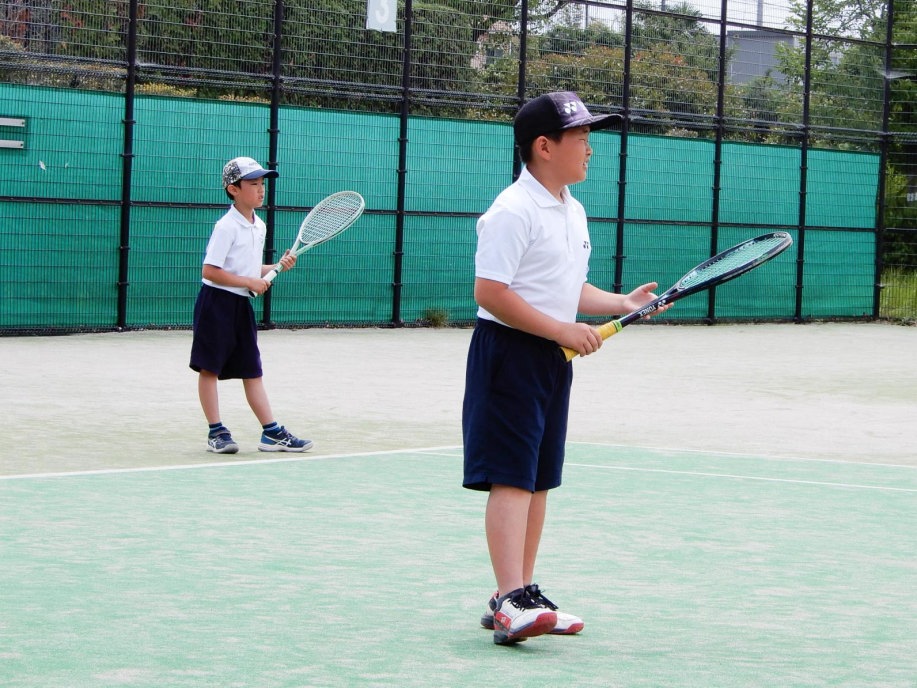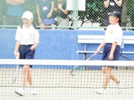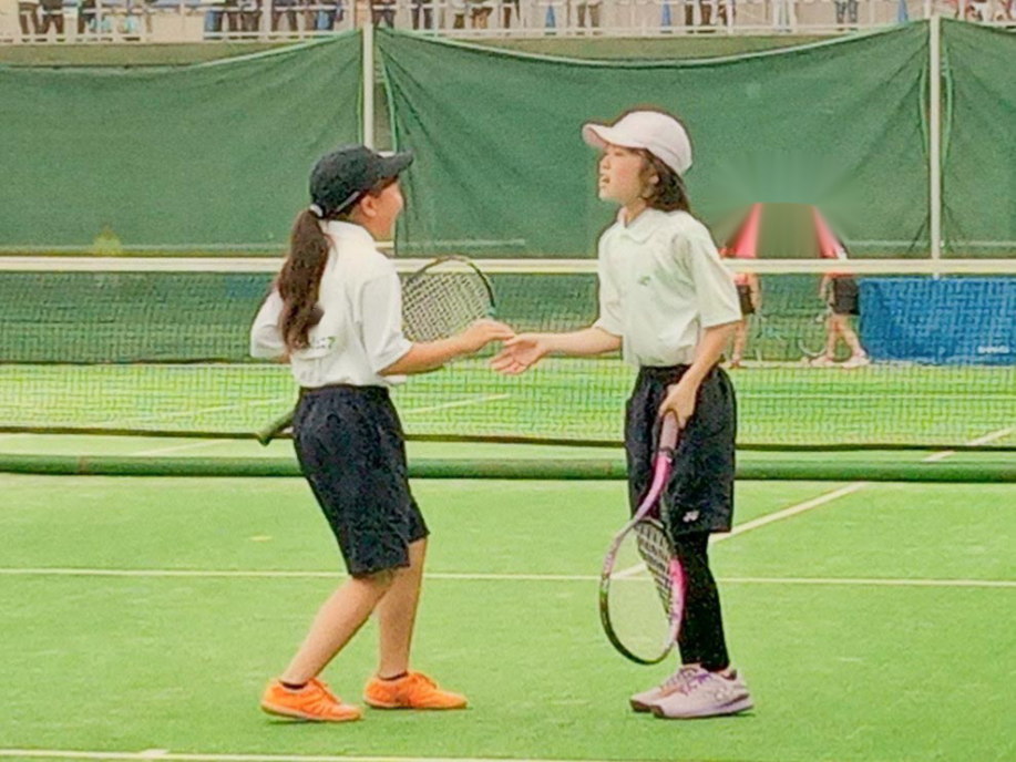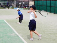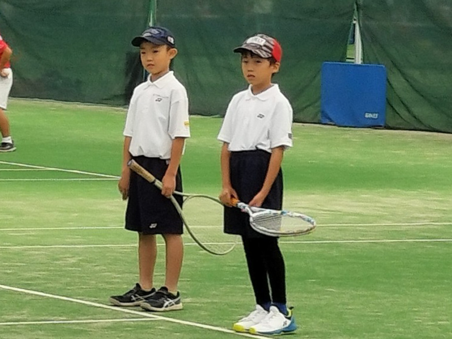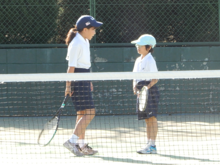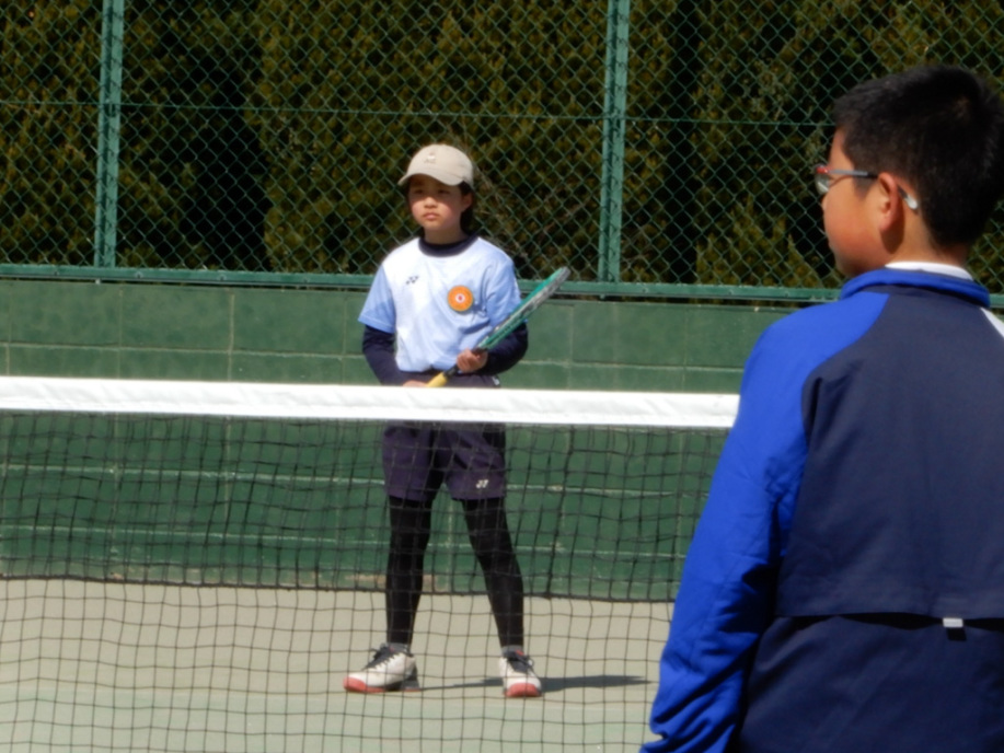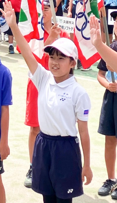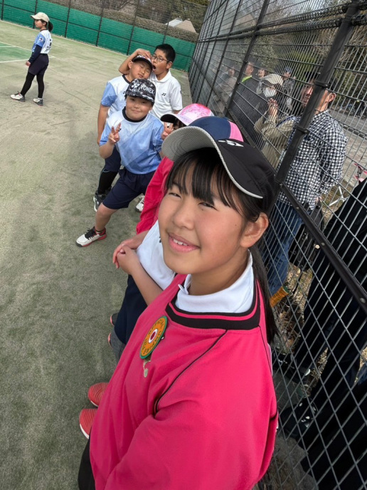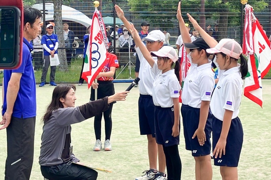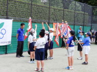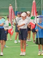 ちょっと風は強いけど、絶好のテニス日和!6年生4名による選手宣誓から始まりました。