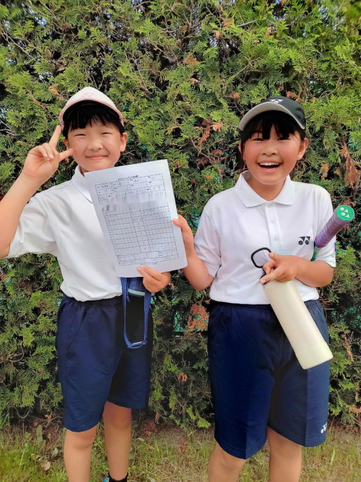 5年生以上は男子が2ペアだけだったので男女混合の部。コウジが2位!ユヅが3位!ヒナ・キコが2位リーグ2位!