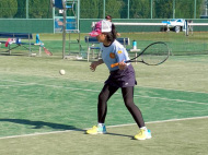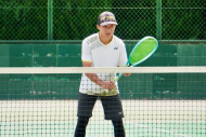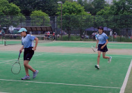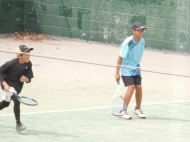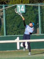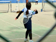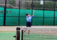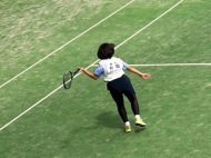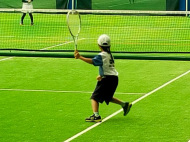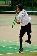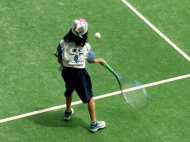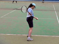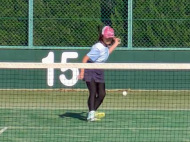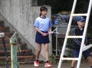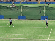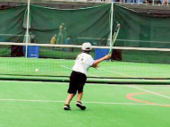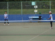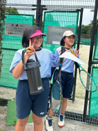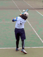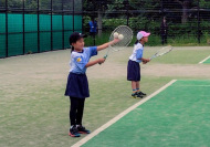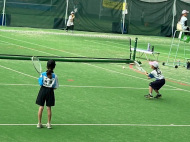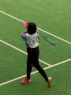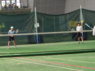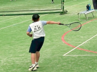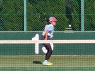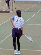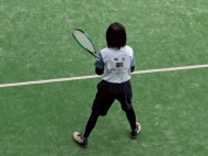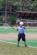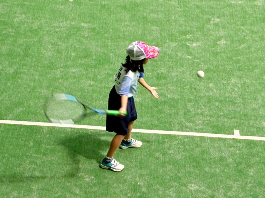 初戦は敗退。2戦目はなんかラリーが続いてきた!二人とも足は速いので結構届くし、ラケットも振れてきました。勝っちゃってもよかったんだけど、負けちゃいましたー。惜しい!