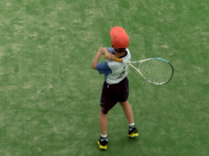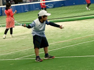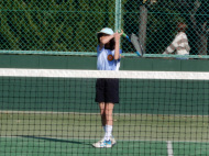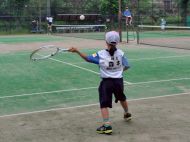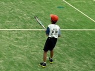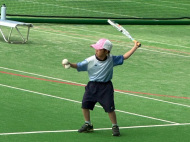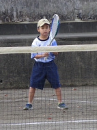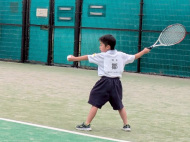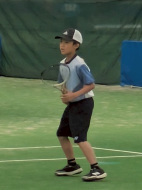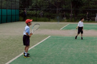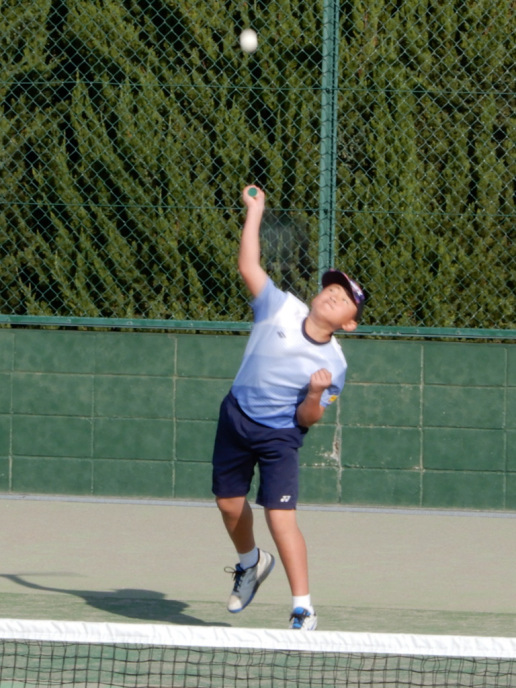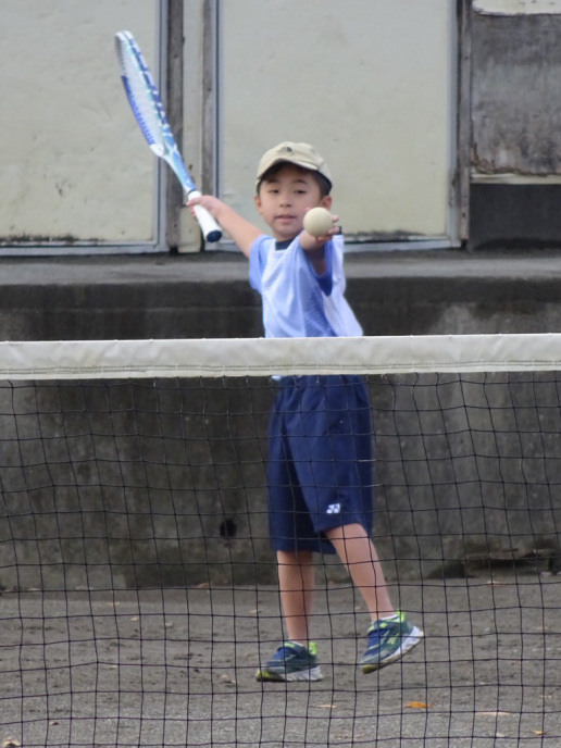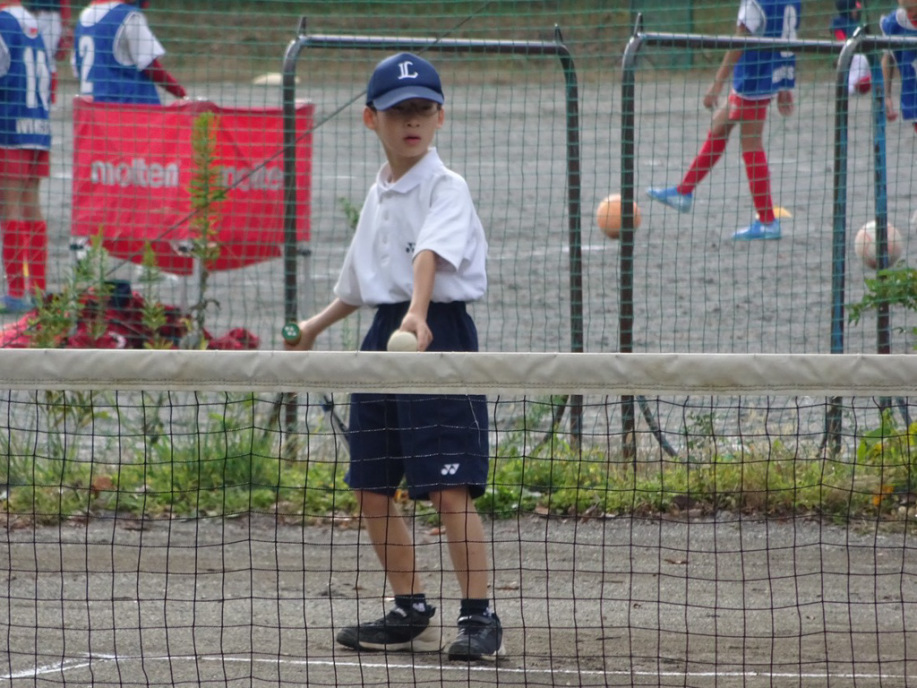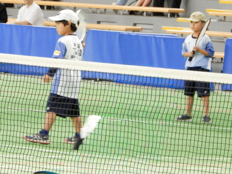 アオイ・アマキ・カズマ・タカシは初試合!アオイは1勝!あとは負けてしまったけど、サーブもレシーブも頑張りました。