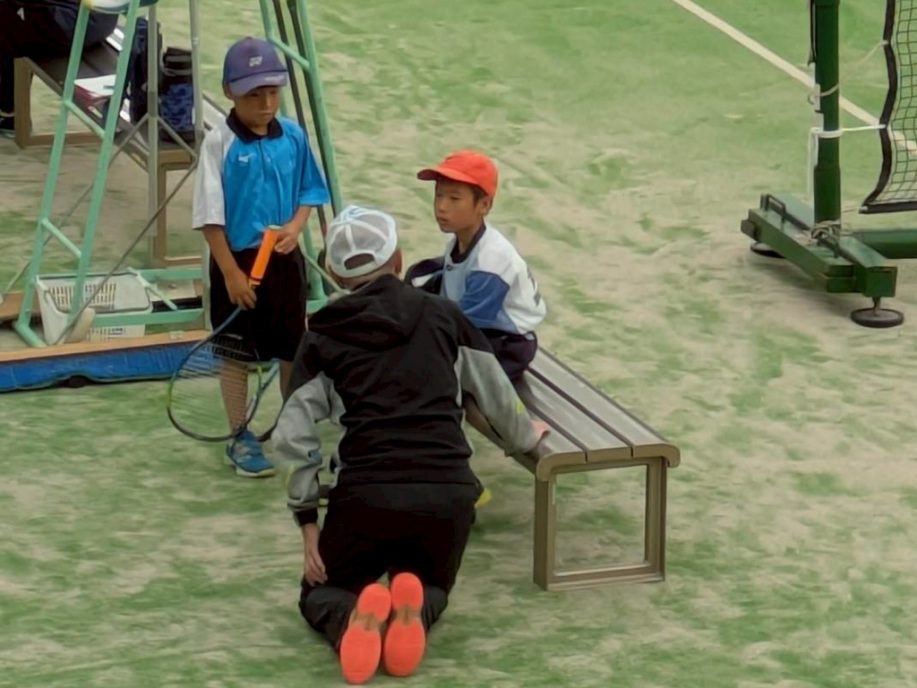 ユウア・カヤは3試合頑張りましたが、全敗で終わりました。ユウアはだいぶラリーが続くようになったね!カヤは緊張気味でしたが、後半よくなりました。次回に期待です。