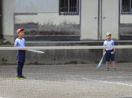 アヤカは本日初試合!緊張感いっぱいでした。リョウスケは個人戦は初出場。こちらもちょっと緊張気味・・・。