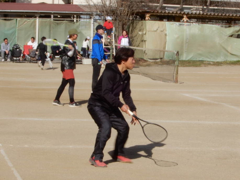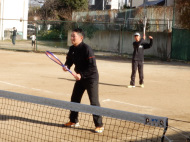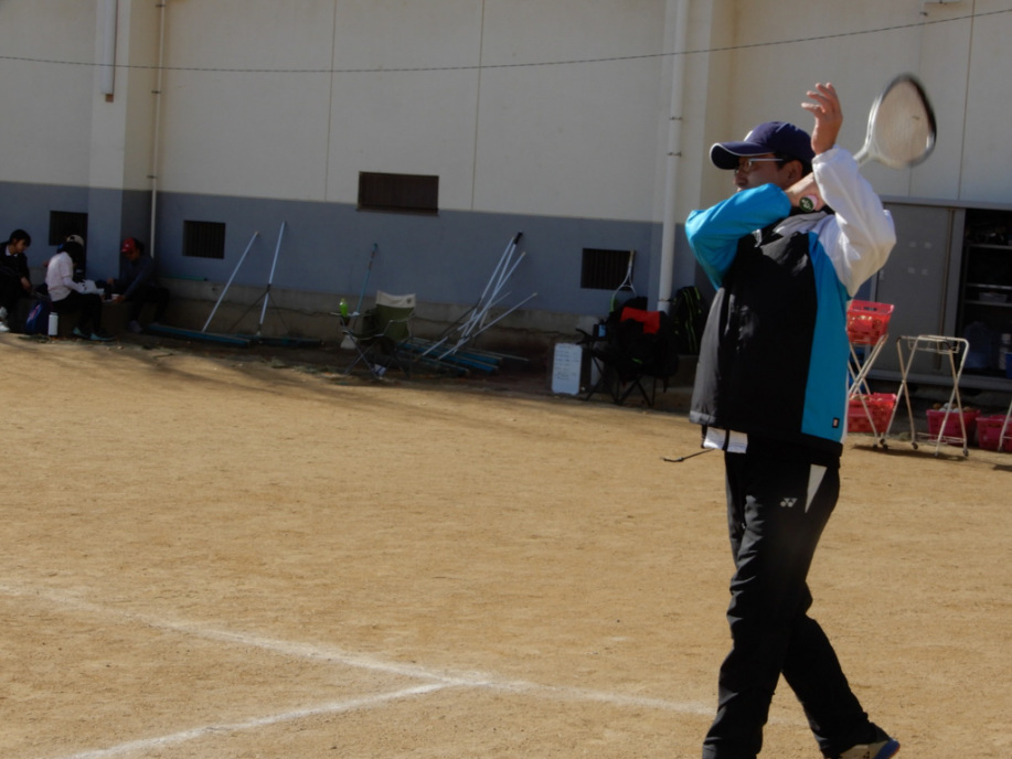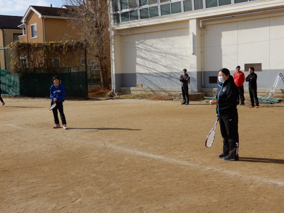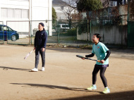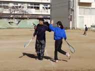 遠くに出されるロブを走って打ちます。今年は3面にしてみよう!