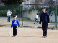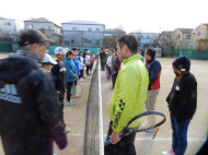 テニス練習開始です!低学年チーム5名、高学年チーム8名です。