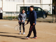 テニスコートへ歩いて移動 |